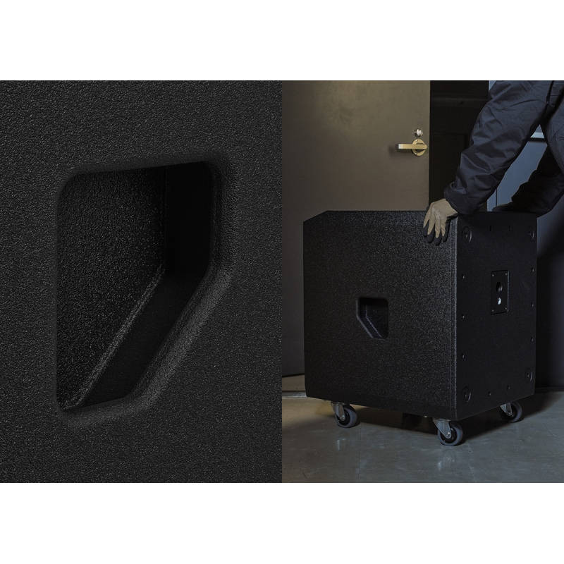 A hangfalak akusztikailag optimalizált rétegelt lemez kabinetben kaptak helyet, amelyet strapabíró, karcálló polyurea bevonat véd. Ez nemcsak kiváló hangzást, hanem hosszú távú megbízhatóságot is garantál turné- és bérlési környezetben is.